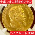 - 【高鑑定!】1864年Aナポレオン3世100フラン金貨【MS64】