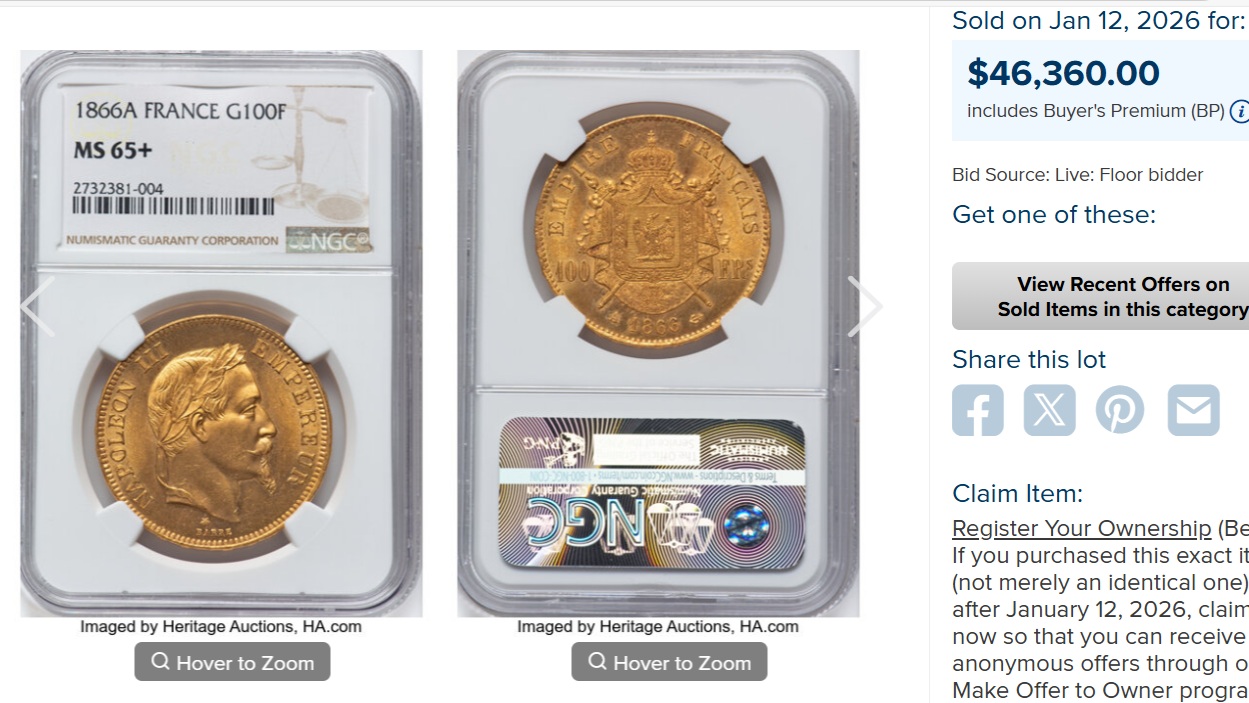 そして、直近の2026年1月には何とMS65+が790万を超えるという信じられないようなレコードを付けました!これは衝撃でしたが、ナポレオン3世の強さを非常に感じるレコードでした。