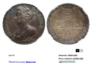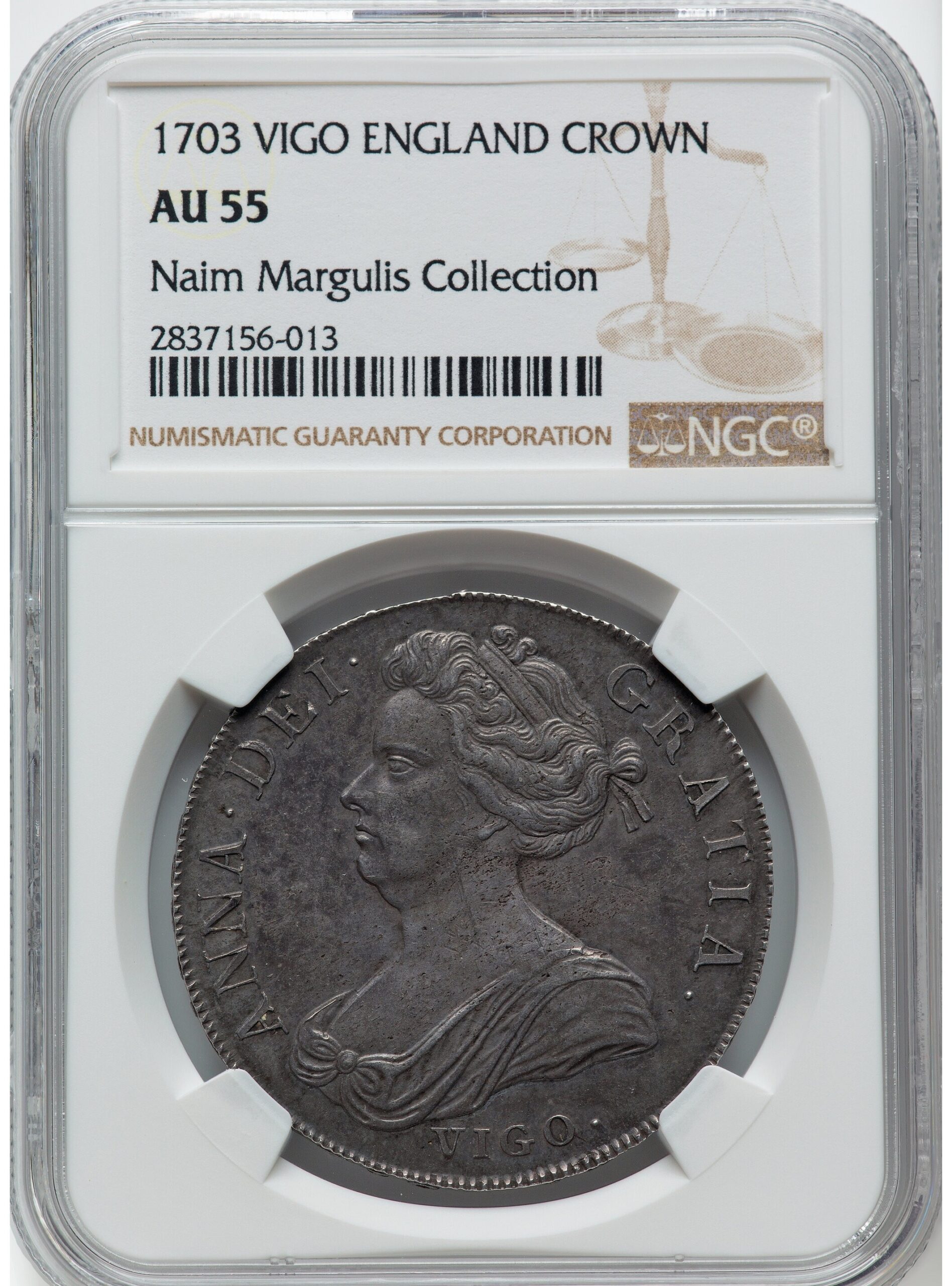 1703年アン女王「VIGO」クラウン銀貨AU55になります。