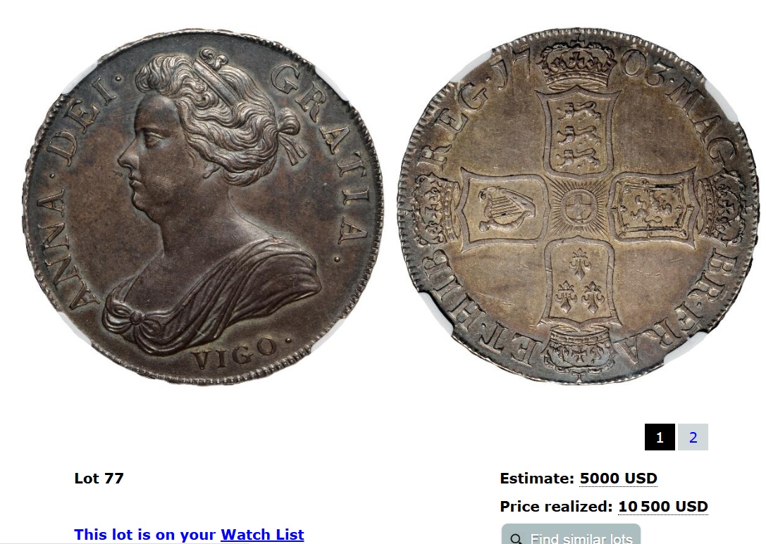 アン女王の「VIGO」は即買いのレベルのコインです。至福の1枚、是非入手されて下さい。