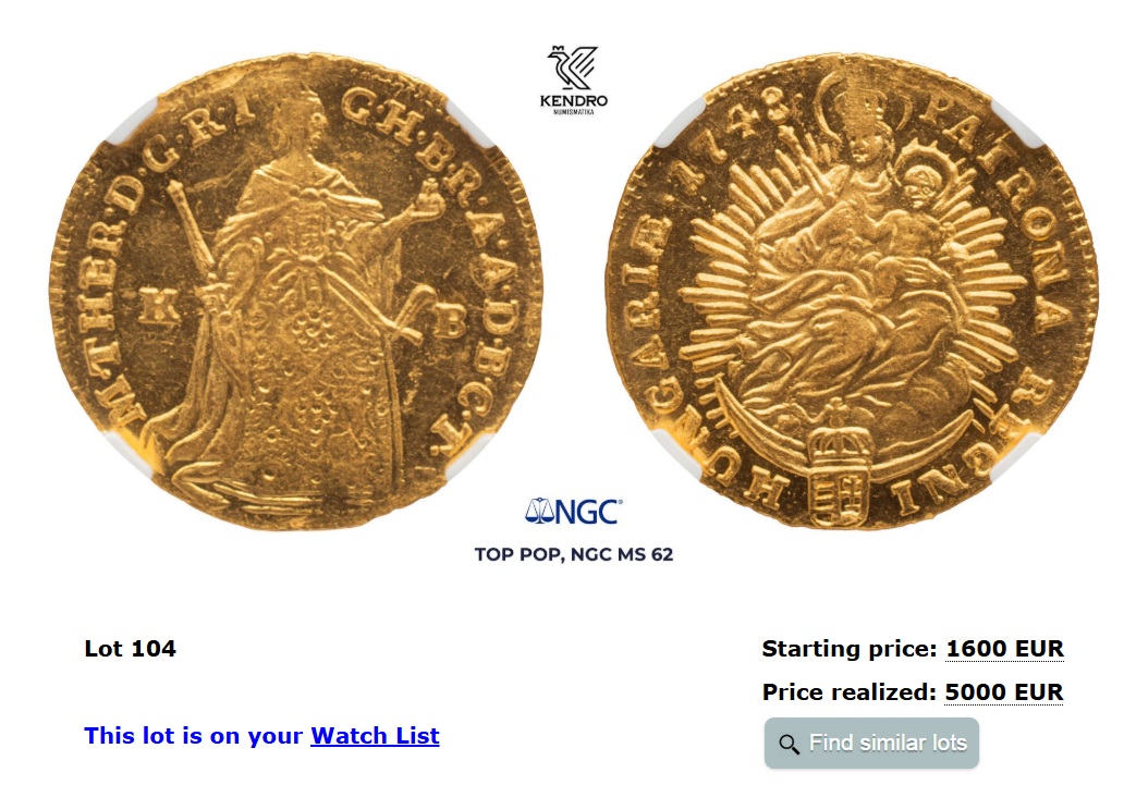 ミントマークKBは、ハンガリーの「クレムニツァ」ミントになります。このコインには1ダカット・2ダカット金貨がございますが、非常に入手が難しくなってきました。小ぶりでコインですが、マリアテレジアのコインを欲しがっている人も多さを考えると、価格はすぐに高騰しそうです、というかすでに高騰してきています。