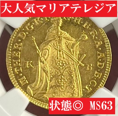 1765年 マリアテレジアのダカット金貨 ハイグレードのNGC MS63になります。