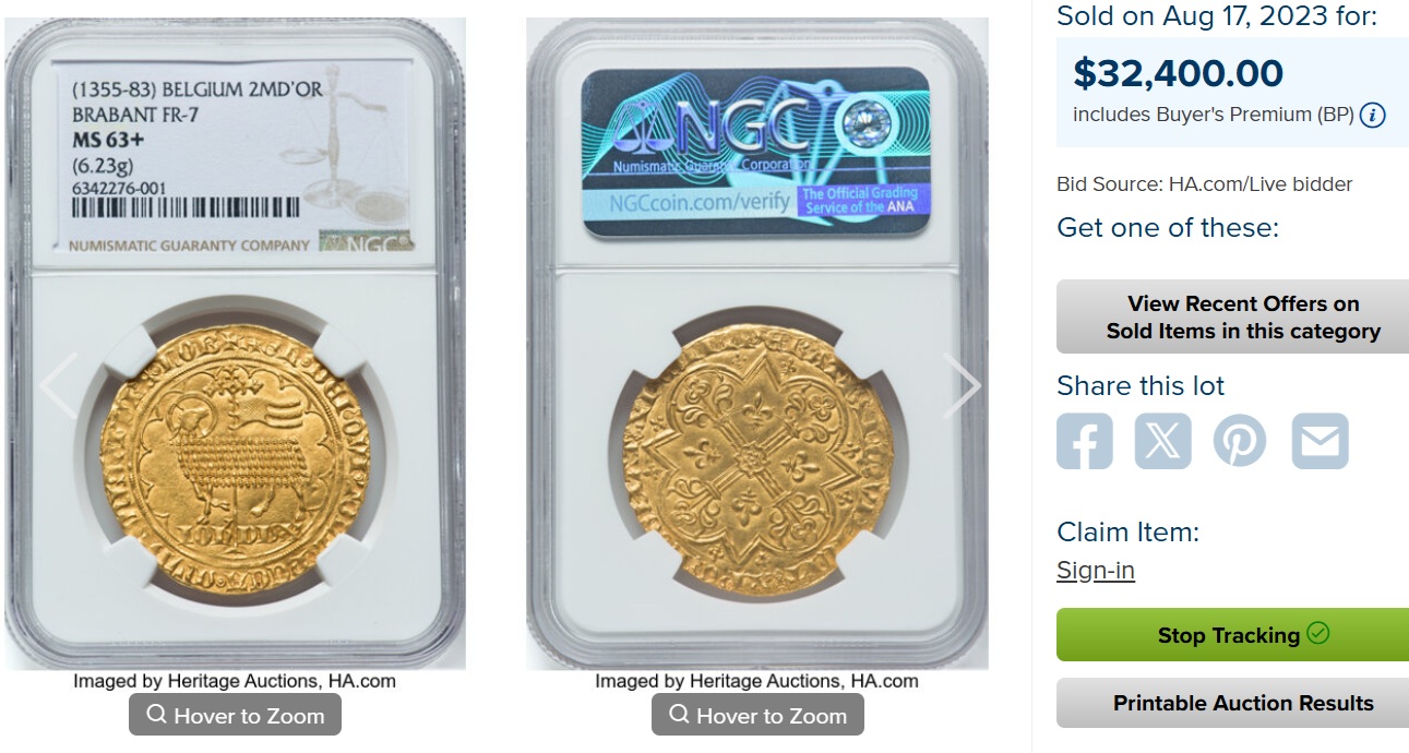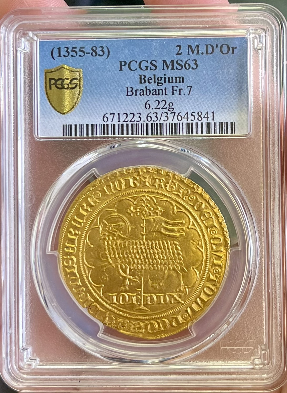 1355年ベルギー「ダブルムートンドール」金貨 NGC MS63の超ハイグレード品になります。