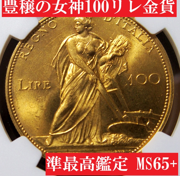 1912年豊穣の女神100リレ金貨【準最高鑑定MS65+】