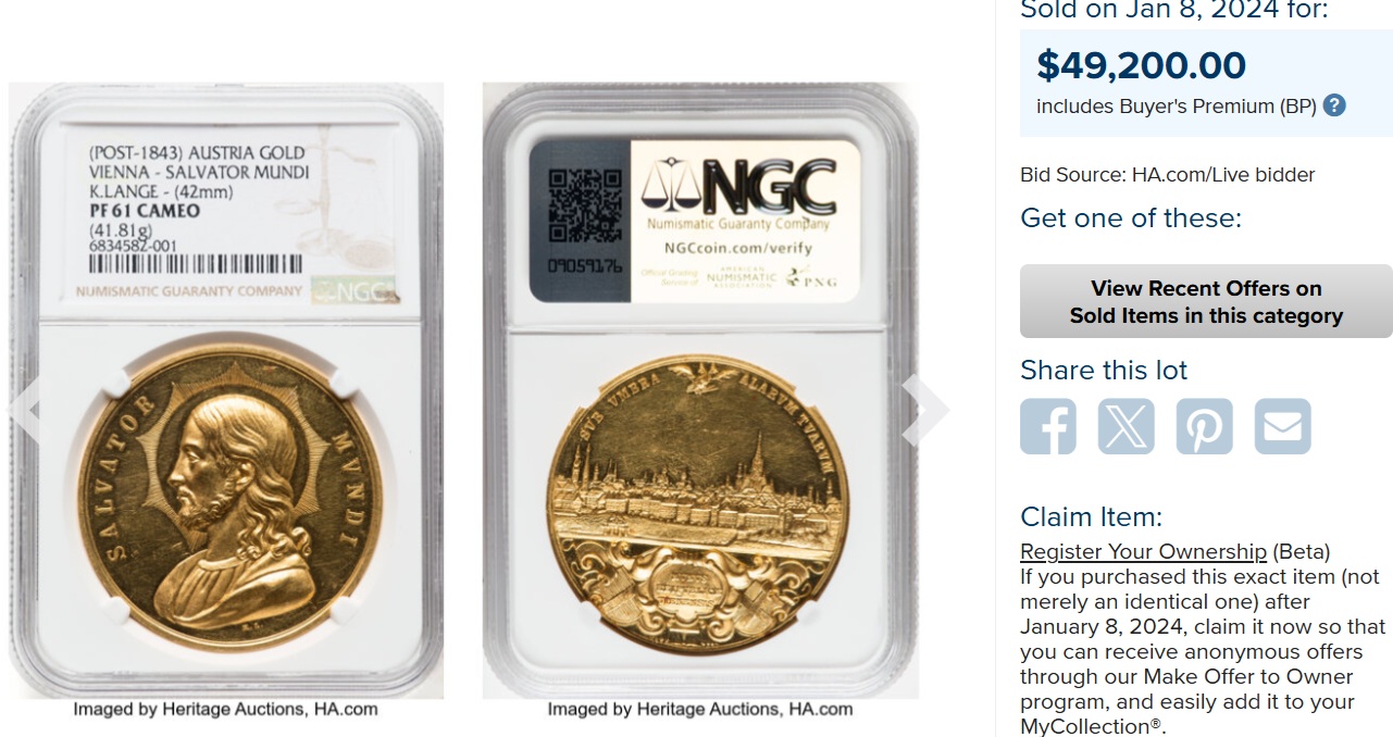 【超希少12ダカット!】サルバトール・ムンディ ウィーン都市景観12ダカット【PF62】