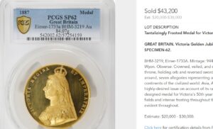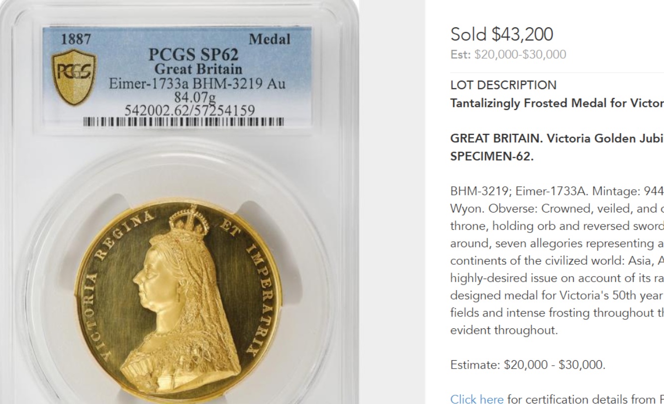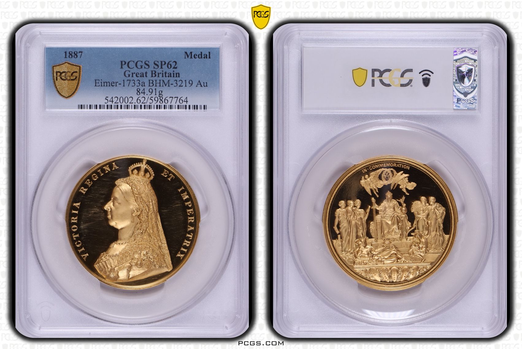 1887年ヴィクトリア女王戴冠50周年記念大型メダルPCGS SP62 になります。