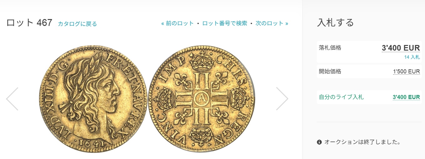 中でも、ルイドール金貨の創生者「ルイ13世」のルイドール金貨は別格の人気を誇り、高額で取引されております。