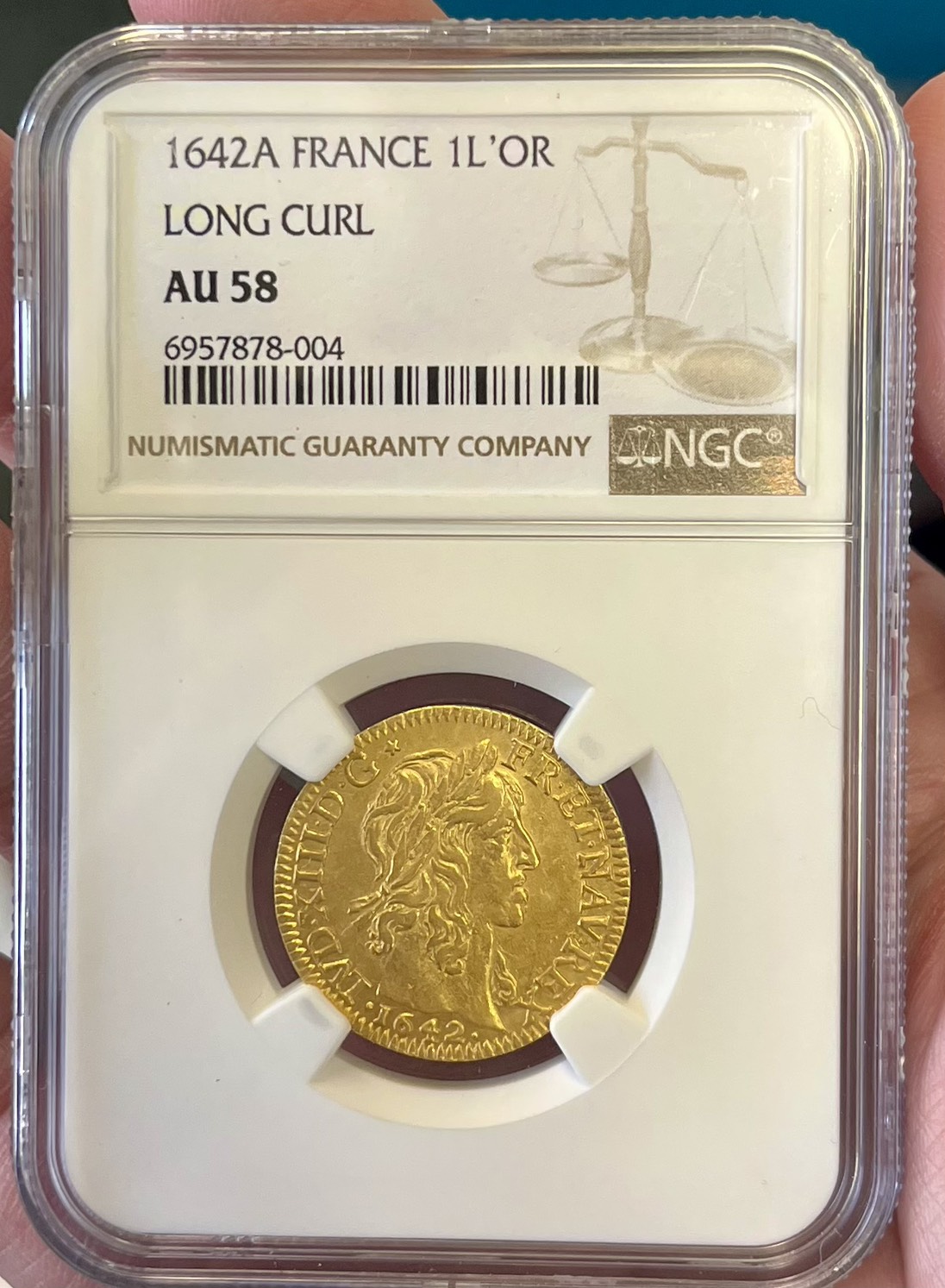 ルイ13世のルイドール金貨、1642年フランス ルイ13世 ルイドール金貨AU58になります。