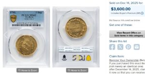 PCGS同年度鑑定枚数は6枚、MS63は3枚、MS63は最高鑑定品となります。