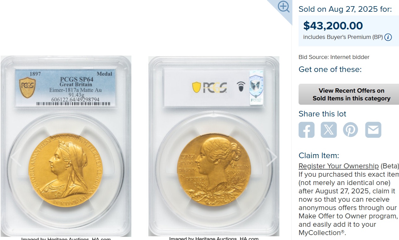 大人気のヴィクトリア女王のゴールデンジュビリーメダルが久々に登場です!