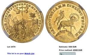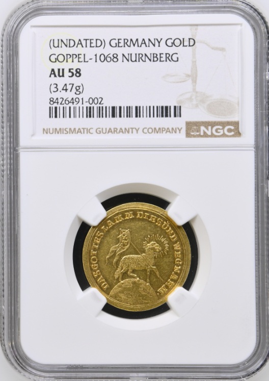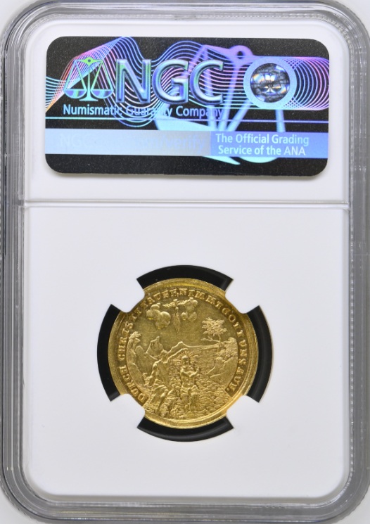 神聖ローマ帝国ニュルンベクラム洗礼1ダカットNGC AU58になります。