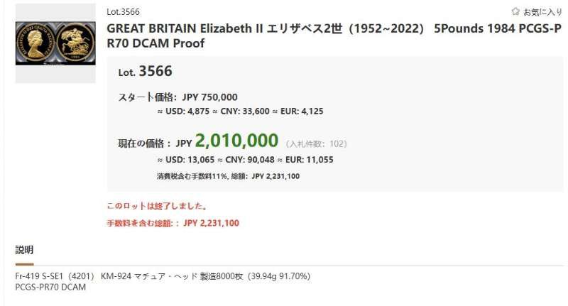 2024年2月に1981年PF70UCが185万円で(6,700£×1.2×1.1×@210円)落札